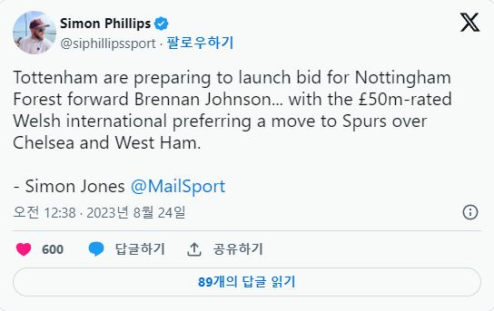토트넘행이 유력해 보이는 공격수
